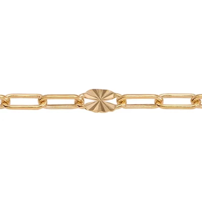 Elevate your jewelry collection with this stunning gold chain featuring sleek elongated links paired with a bold, faceted centerpiece that catches the light from every angle. The sunburst-style accent adds just the right amount of shine, making this piece effortlessly eye-catching yet timeless. Perfect for permanent jewelry or everyday wear, this chain blends modern elegance with a touch of luxury—ideal for clients who want something unique but still versatile. 💛 Why you’ll love it: • Eye-catching center detail with radiant shine • Sleek elongated links for a modern, elevated look • Perfect balance of bold + minimal • Great for bracelets, anklets, or layering pieces • Designed to stand out while staying timeless Whether worn solo or paired with other chains, this piece is guaranteed to become a client favorite. 3E340